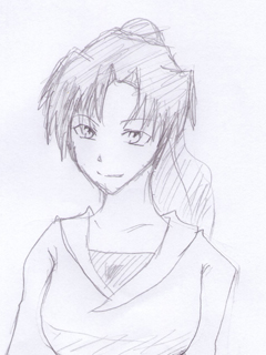 →まとめた髪を上の方でくくってるわ。ポニーテールっていうの?