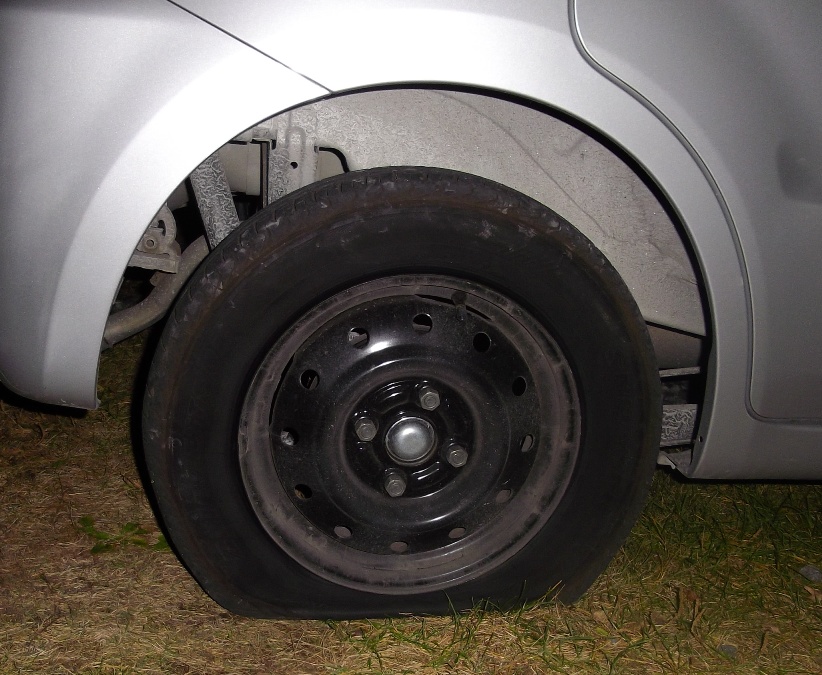 ホイールが外れているどころか、タイヤがパンクしてるでは